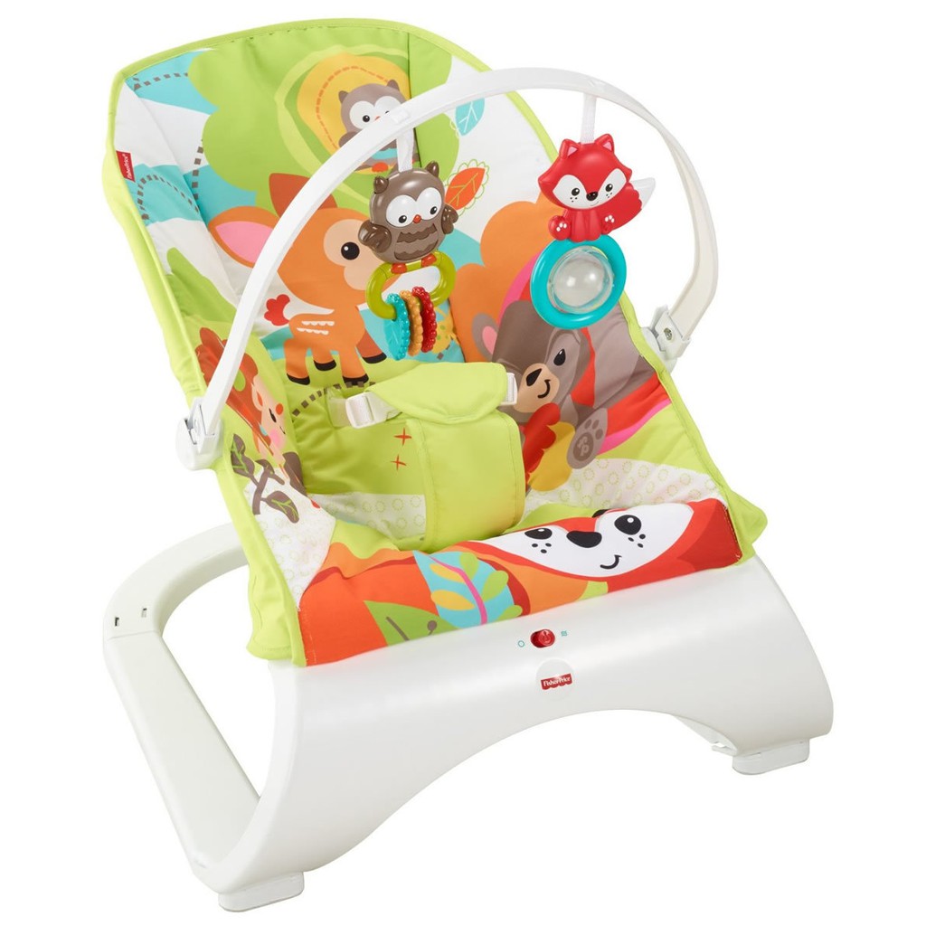 New Baby City - Fisher Price Rainforest Friends Comfort Curve Bouncer. Removable toy bar with two bat-at toys; Calming vibrations; Machine-washable seat pad; Modern, non-skid design. | Facebook